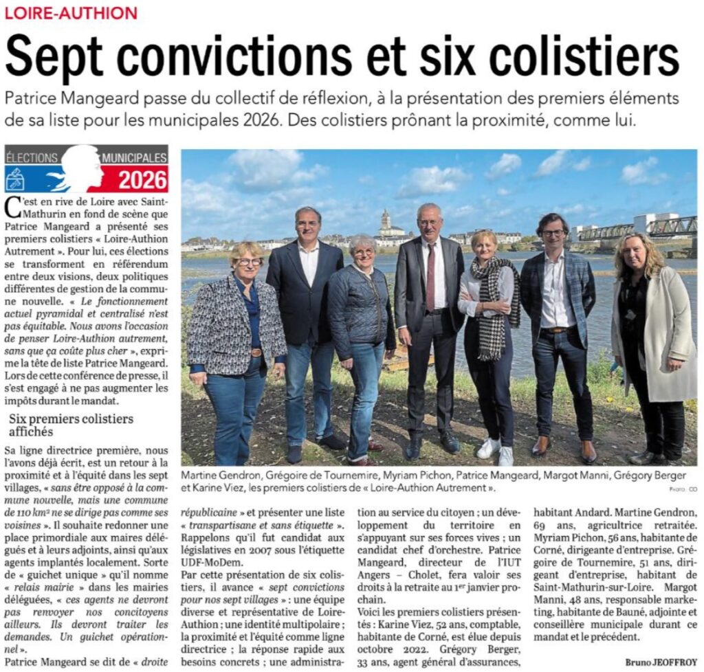« Loire-Authion Autrement » : la liste pour les municipales en mars prochain !
